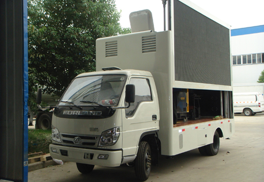 LED廣告宣傳車一般用于產(chǎn)品推廣、品牌推廣、選秀活動(dòng)、銷售現(xiàn)場展示、體育賽事、演唱會、音樂會等。可以進(jìn)行現(xiàn)場展示、交流、互動(dòng),宣傳范圍廣泛,可以有效獲得最大的廣告?zhèn)鞑バЧ?br /> LED廣告宣傳車標(biāo)準(zhǔn)配置:一側(cè)全彩屏,另側(cè)帶字幕廣告燈箱,5cm復(fù)合鋼架箱體,外冷扎板內(nèi)鋁板,木地板,高檔地板革,4個(gè)液壓支腿,高精度單側(cè)屏舉升,機(jī)電一體化控制,循環(huán)通風(fēng)降溫系統(tǒng),安全智能內(nèi)外網(wǎng)配電切換系統(tǒng),高性能靜音柴油發(fā)電機(jī)組;電腦智能2-7副燈畫切換;全防水高度P10真彩車載LED精品屏,千兆流媒體控制系統(tǒng)。