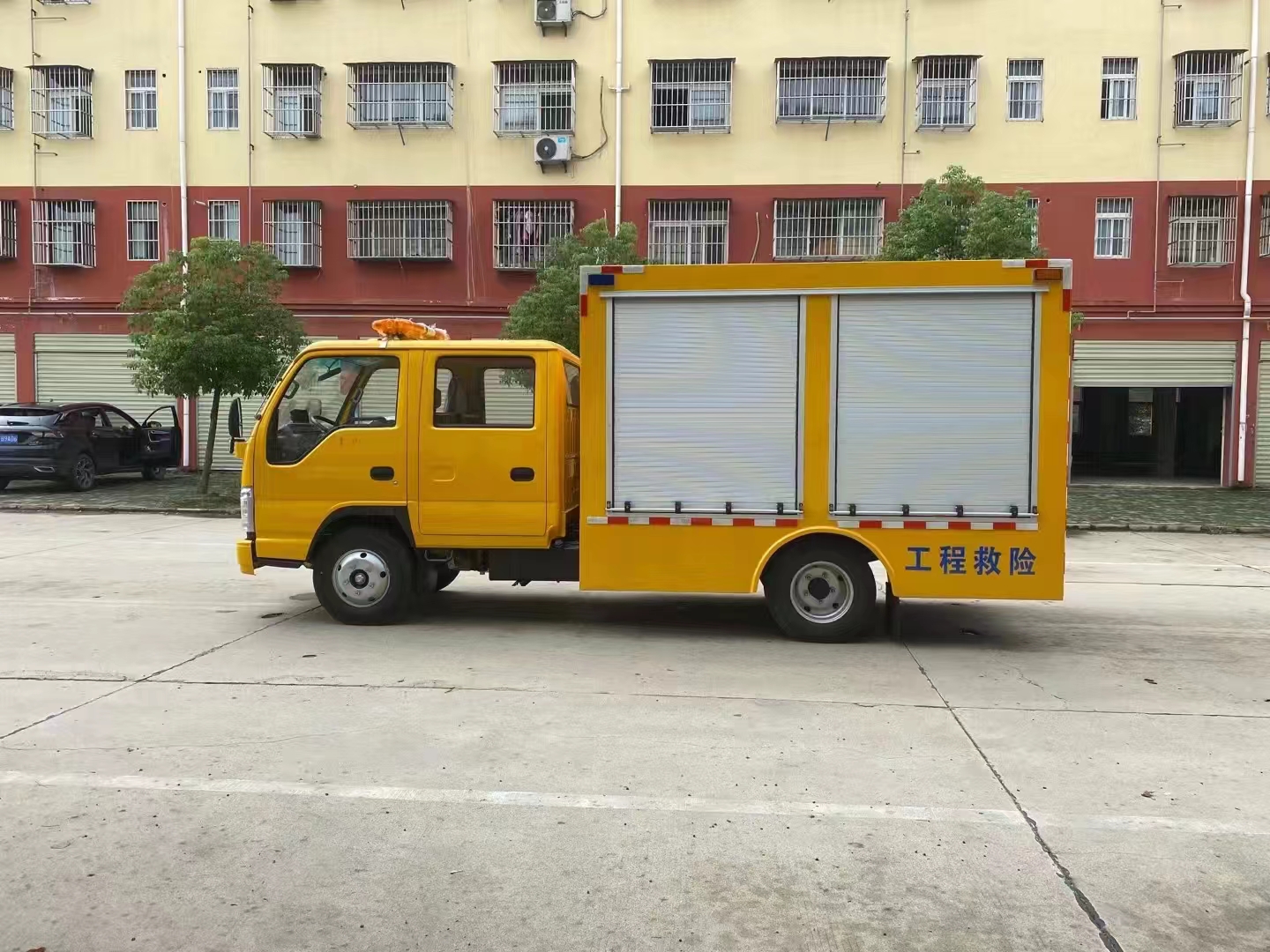 | 上裝配置 | 車箱一體式全封閉車箱車箱有隔音功能,廂體防火,阻燃,防雨,防塵,防銹,降噪,隔震,長期抗震結構,廂體外觀按照公告外觀制作,左右卷簾門,尾部是卷簾門,廂內安裝LED作業燈,作業燈帶獨立開關,底板采用花紋板。配備康明斯50KW發電機組,2臺功率22KW便攜式超輕型高速潛水泵,單臺水泵流量可達500m³/h,單泵配40米排水管(20米/根),水管直徑 DN200mm,水管材質為滌綸長絲編織。配有升降照明燈,升降燈可通過無線和有線遙控兩種方式控制,升降燈升降高度為1.2米,可水平旋轉。帶接地樁和接地電纜線,便攜泵控制柜,潛水泵浮圈,長排警燈,倒車影像,配兩只手提式干粉滅火器2只。其余為標配… | ||